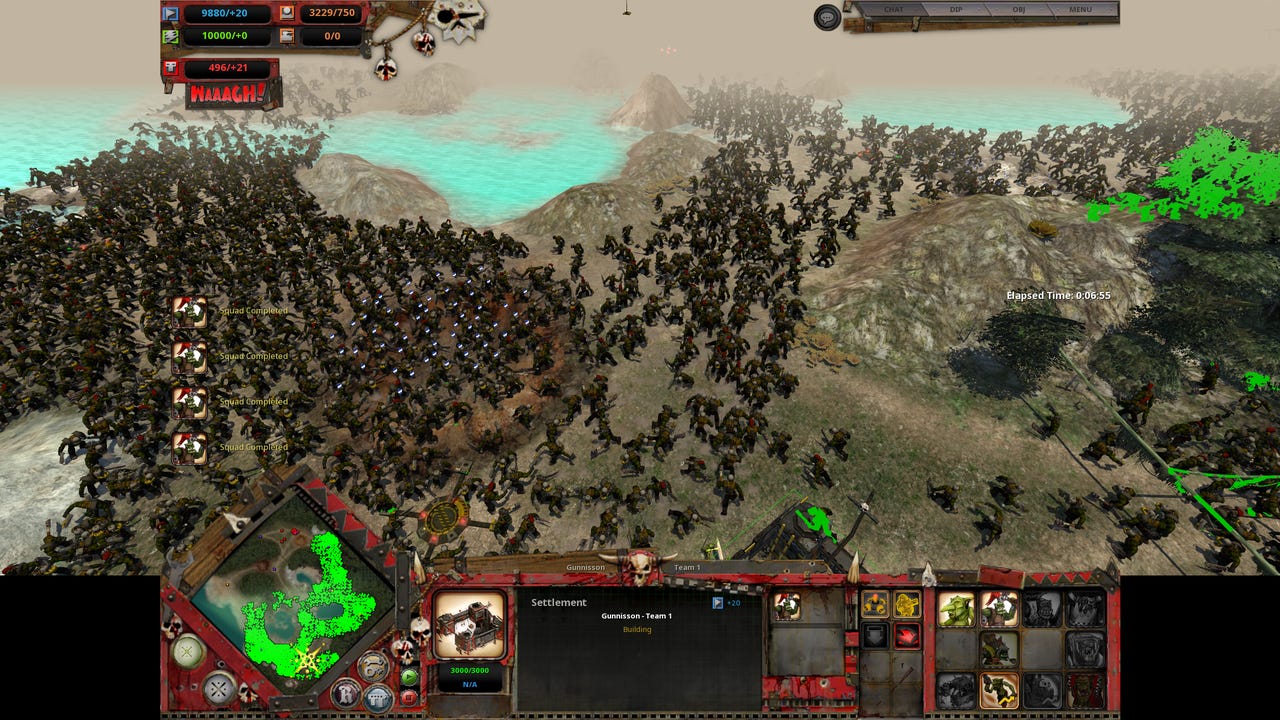 Ork se držao na povećanju, do točke kada je, nakon više od 10 000 orkova, Dawn of War pogodio jednocifrene okvire u sekundi i postao je nemogući. Ali još uvijek je trčao! “Mislim, 10 000+ modela na ekranu, to nazivam pobjedom za performanse i stabilnost”, rekao je Gunnisson.