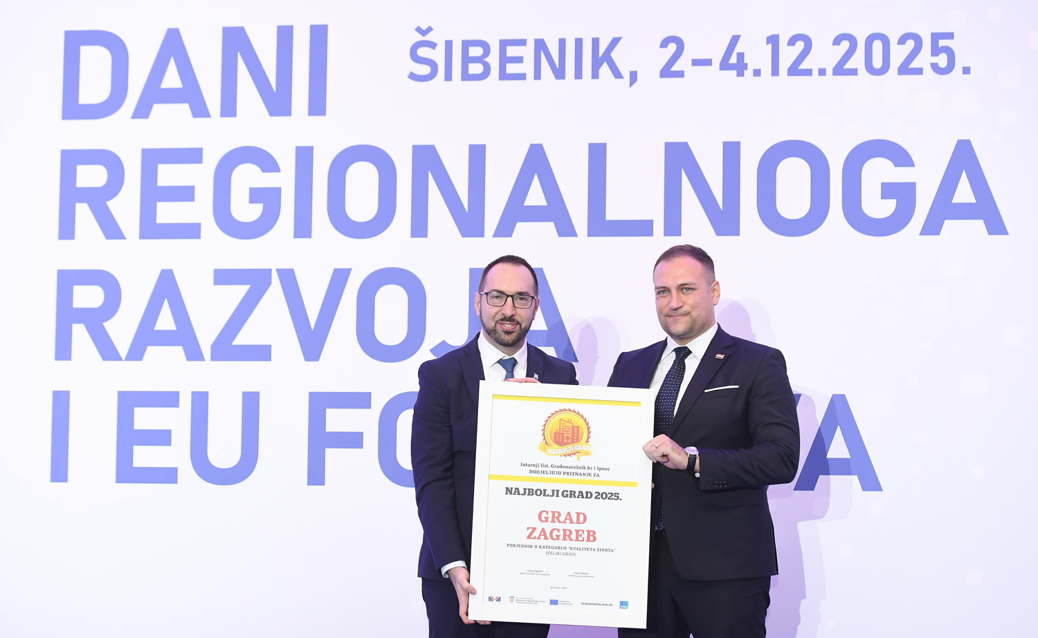 Sisak je dobio posebnu nagradu namijenjenu sredini s najvećim postignutim napretkom u podizanju kvalitete života, a Velika Gorica je osvojila nagradu ‘Najprivlačniji grad’ namijenjena sredini s najboljim pokazateljima useljavanja novog stanovništva.