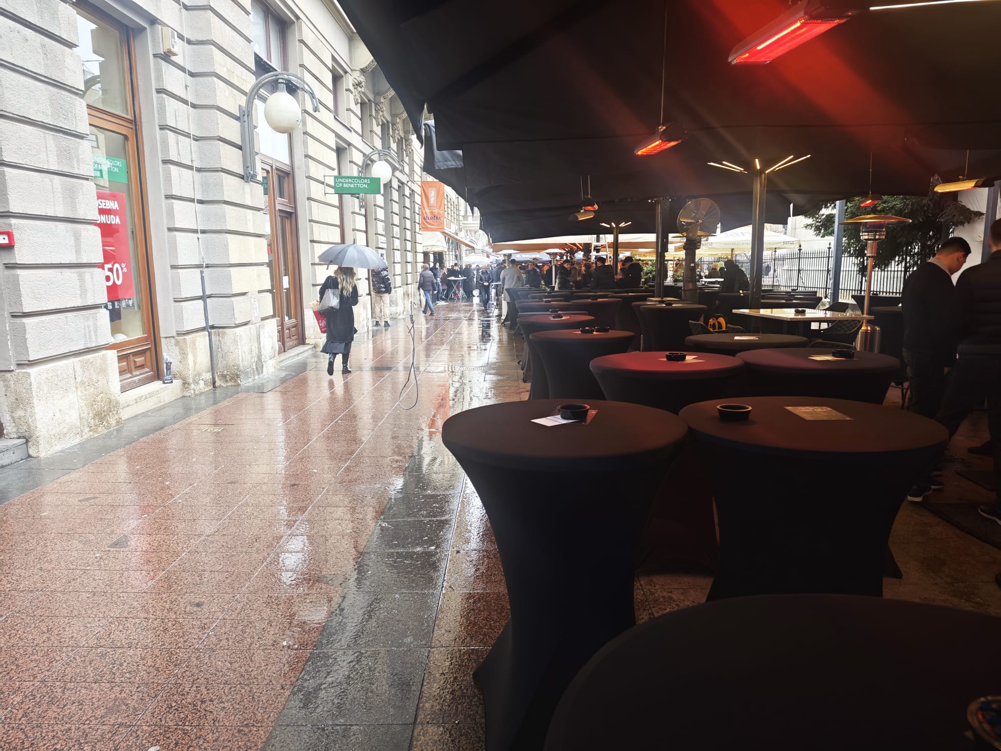 Ugostitelji koriste sve što im može poslužiti – suncobrane, kišobrane, cerade, tende i slično. Međutim, danas od jutra osjeća se napetost u zraku. Do centra se zaputio i jedan Zagrepčanin, koji nam je opisao atmosferu.