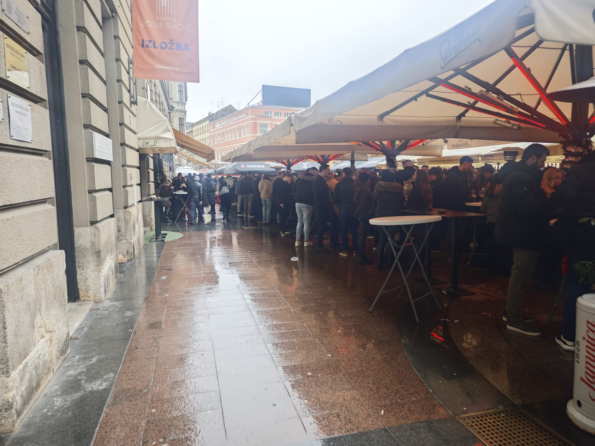 Ugostitelji koriste sve što im može poslužiti – suncobrane, kišobrane, cerade, tende i slično. Međutim, danas od jutra osjeća se napetost u zraku. Do centra se zaputio i jedan Zagrepčanin, koji nam je opisao atmosferu.