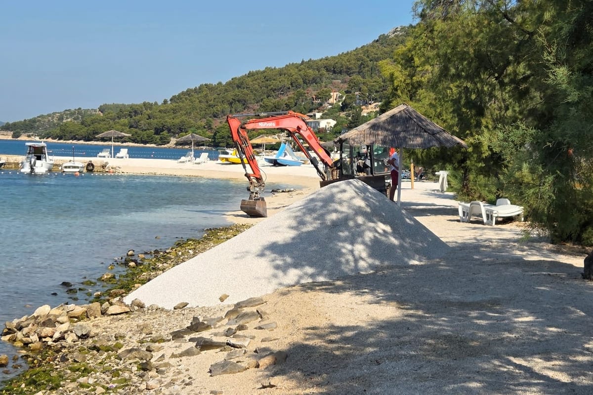 Nakon našeg upita, betonski stupovi na plaži odjednom zatrpani šljunkom – Općina Sutivan: “Nismo zatekli izvođenje radova, provjerit ćemo nelegalno betoniranje!”
