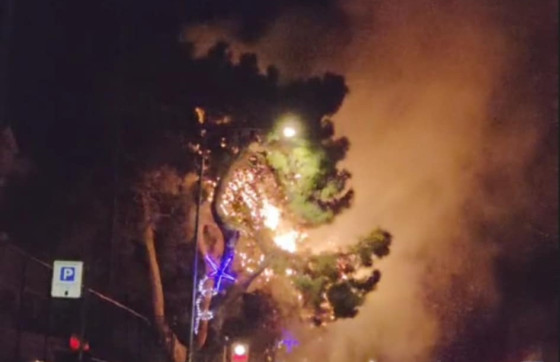 Zapalilo se stablo u blizini igrališta u Ulici Andrije Hebranga (VIDEO)