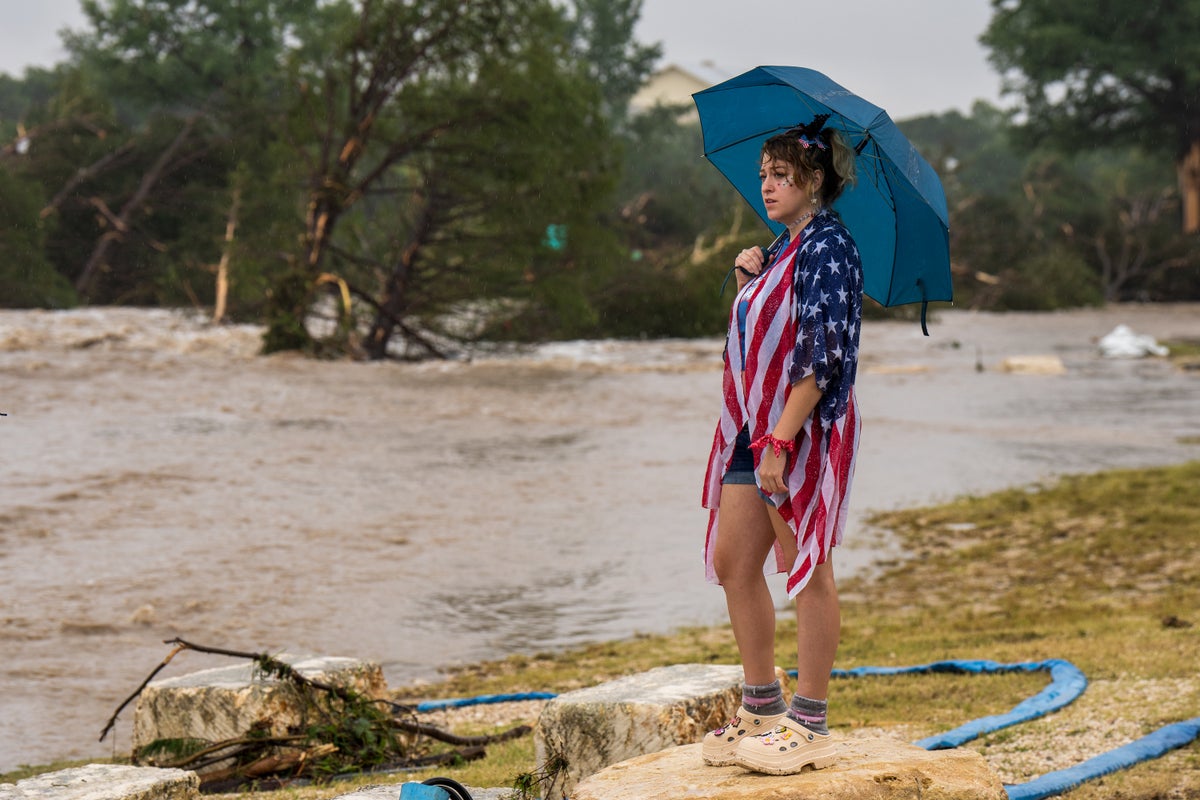 Monstruova, brzo kretana poplava prolazila je u petak kroz brdsku zemlju zapadnog centralnog Teksasa, dok su mnoge obitelji slavile 4. srpnja.