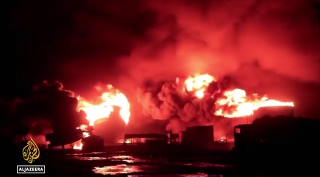 Izraelci su pogodili rafineriju i električnu infrastrukturu, izazvavši veliki požar. U subotu su Izraelske obrambene snage (IDF) priopćile da su njihovi borbeni zrakoplovi napali vojne ciljeve u luci Hodeidah u Jemenu “kao odgovor na stotine napada izvedenih protiv države Izrael posljednjih mjeseci”. Izraelski premijer Benjamin Netanyahu rekao je kasnije navečer da je luka bila meta jer se koristila “u vojne svrhe”. Udar, dodao je, “jasno stavlja do znanja našim neprijateljima da ne postoji mjesto koje duga ruka države Izrael neće dosegnuti”.