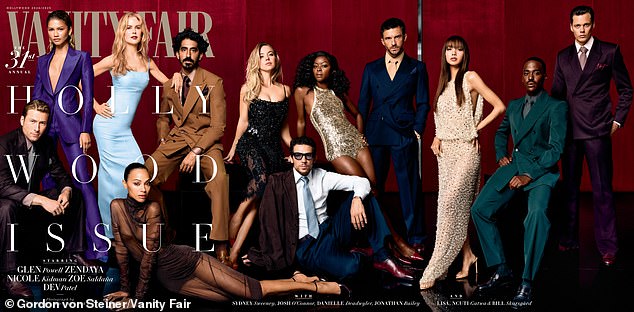 Najveće zvijezde 2025. okupile su se za Hollywoodsko izdanje Vanity Faira (LR Glen Powell, Zendaya, Nicole Kidman, Zoe Saldana, Dev Patel, Sydney Sweeney, Josh O’Connor, Danielle Deadwyler, Jonathan Bailey, Lisa, Ncuti Gatwa i Bill Skarsgard )