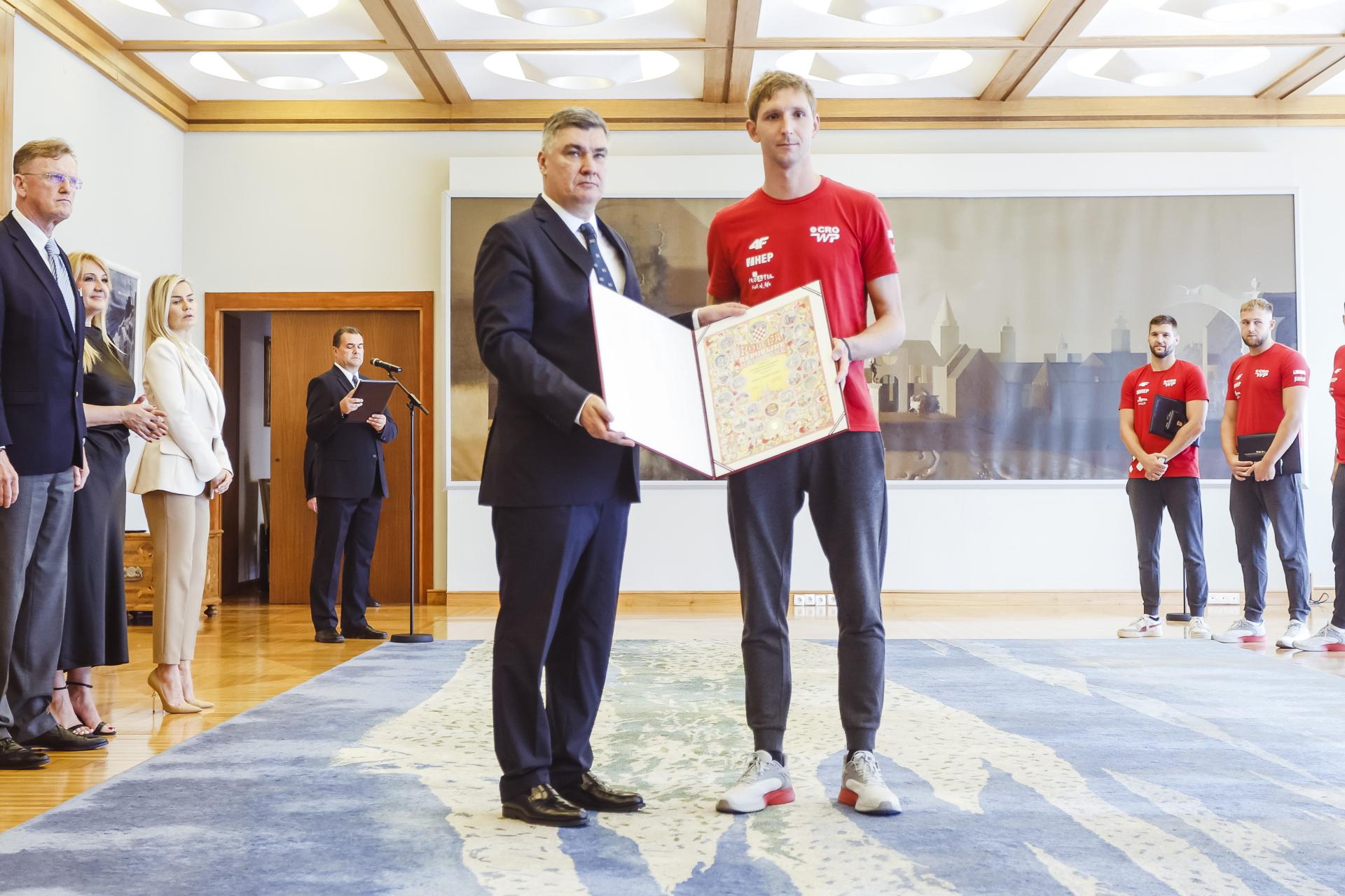 Bili su vaterpolisti kod predsjednika Zorana Milanovića, preuzeli su priznanja (odlikovanja) za naslov svjetskog prvaka, trijumf u Dohi u veljači ove godine, a kako sutra kreću za Pariz, nema tko nije poželio da se nađu na istom mjestu i nakon Olimpijskih igara. To bi značilo kako je nastavljen niz uspjeha, kako su vaterpolisti i treće veliko natjecanje u ovoj, 2024. godini, zaključili na postolju.