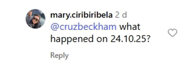 U međuvremenu, dok je Cruz u petak izveo svoje bizarne cipele uoči Modne revije Victoria’s Pariza, njegova djevojka je uzela na njezin Instagram da podijeli puknu nogu parova, kao i zumirani u slici svog šešira, koji je pročitao datum ’24 .10.25 ‘.