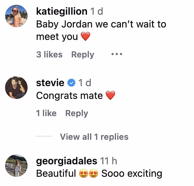 Obožavatelji i slavni prijatelji brzo su podijelili svoje čestitke, šiknuvši: ‘Baby Jordan, jedva čekamo da te upoznamo’: ‘Čestitam prijatelju’: