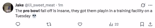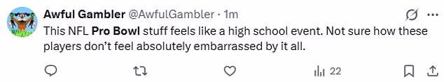 Drugi je objavio: ‘Ovaj NFL Pro Bowl izgleda kao srednjoškolski događaj. Nisam siguran kako se ovi igrači ne osjećaju apsolutno posramljeni zbog svega toga.’