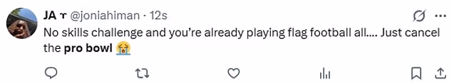 ‘Nema izazova s vještinama i već igrate nogomet s zastavom. Samo otkaži Pro Bowl,’ drugi je zahtijevao.