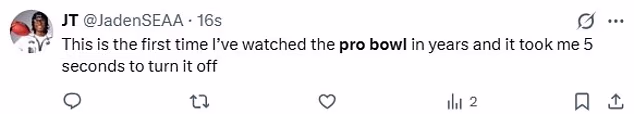 Jedan je komentirao: ‘Ovo je prvi put da sam gledao Pro Bowl u godinama i trebalo mi je pet sekundi da ga isključim’.